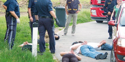 Keine 20 Minuten nach der Alarmierung konnten gestern Abend fünf Bankräuber im Salzkammergut verhaftet werden. Vier mit Baseballkappen und Sonnenbrillen maskierte Männer hatten mit einer Waffe kurz vor 17 Uhr die Filiale der Raiffeisenbank in Oberwang (Bezirk Vöcklabruck) gestürmt. Doch ein couragierter Bankangestellter vereitelte den Plan. Er griff noch im Foyer ein, rief den Männern zu, dass die Bank bereits geschlossen habe.