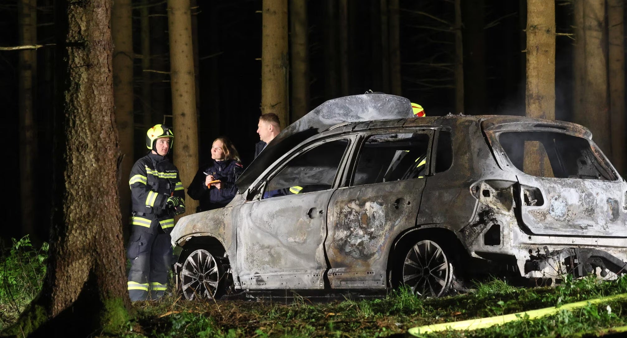 Von Maturanten geraubtes Auto nach Flucht im Wald angezündet.