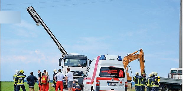Mit dem Transportband seines Betonmischers kam ein Lkw-Fahrer (35) in 30.000 Volt.