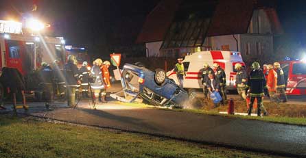 Andreas B. wurde beim Crash im Wrack eingeklemmt, musste von insgesamt 45 Feuerwehrmännern geborgen werden. Er kam schwer verletzt ins Krankenhaus Gmunden.
