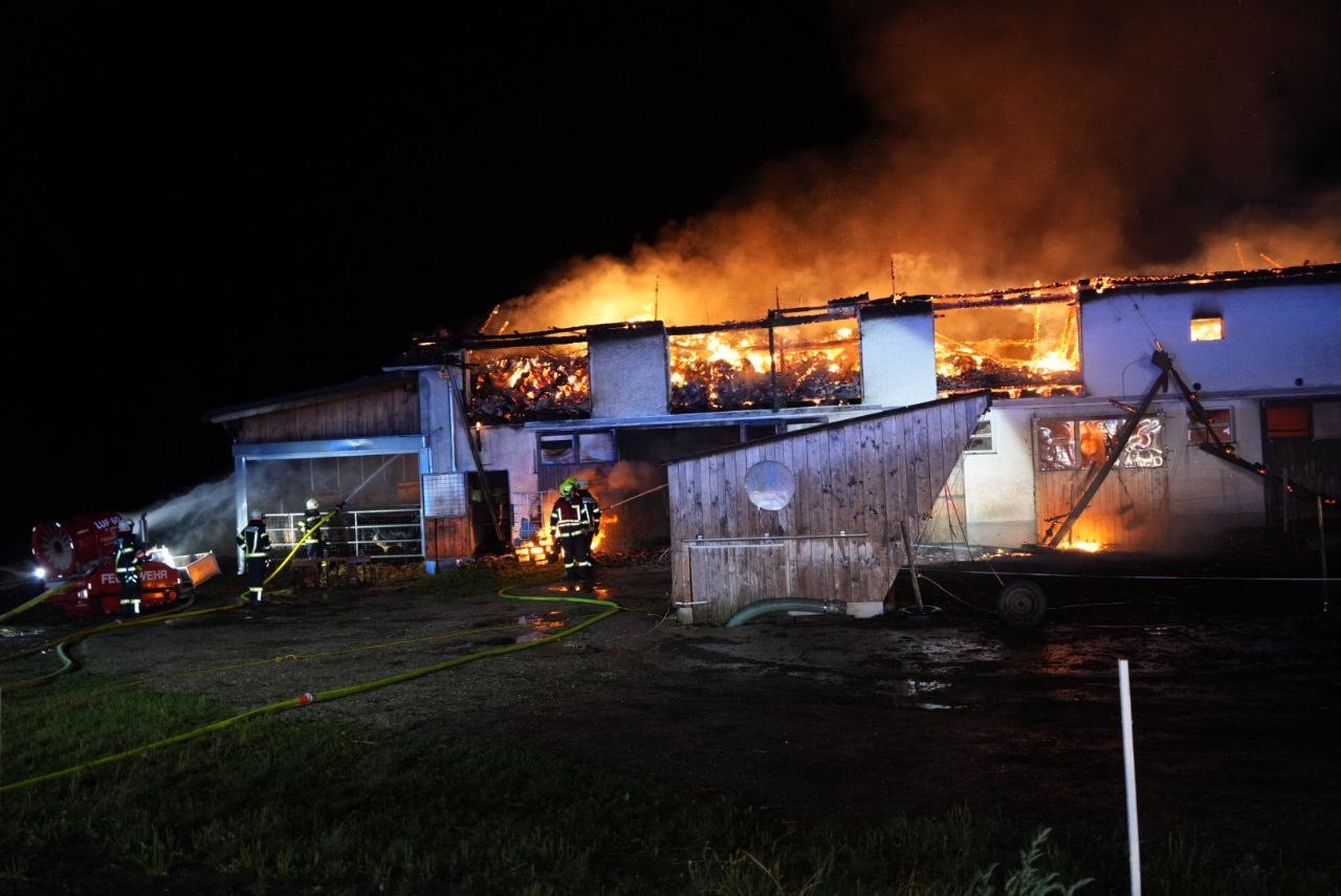 Ein Blitz ist in der Nacht auf Dienstag in einen Bauernhof eingeschlagen. Das Gebäude stand schon kurze Zeit später in Vollbrand. Beim Ausbruch des Feuers waren rund 30 Schweine und 60 Rinder im Stall.