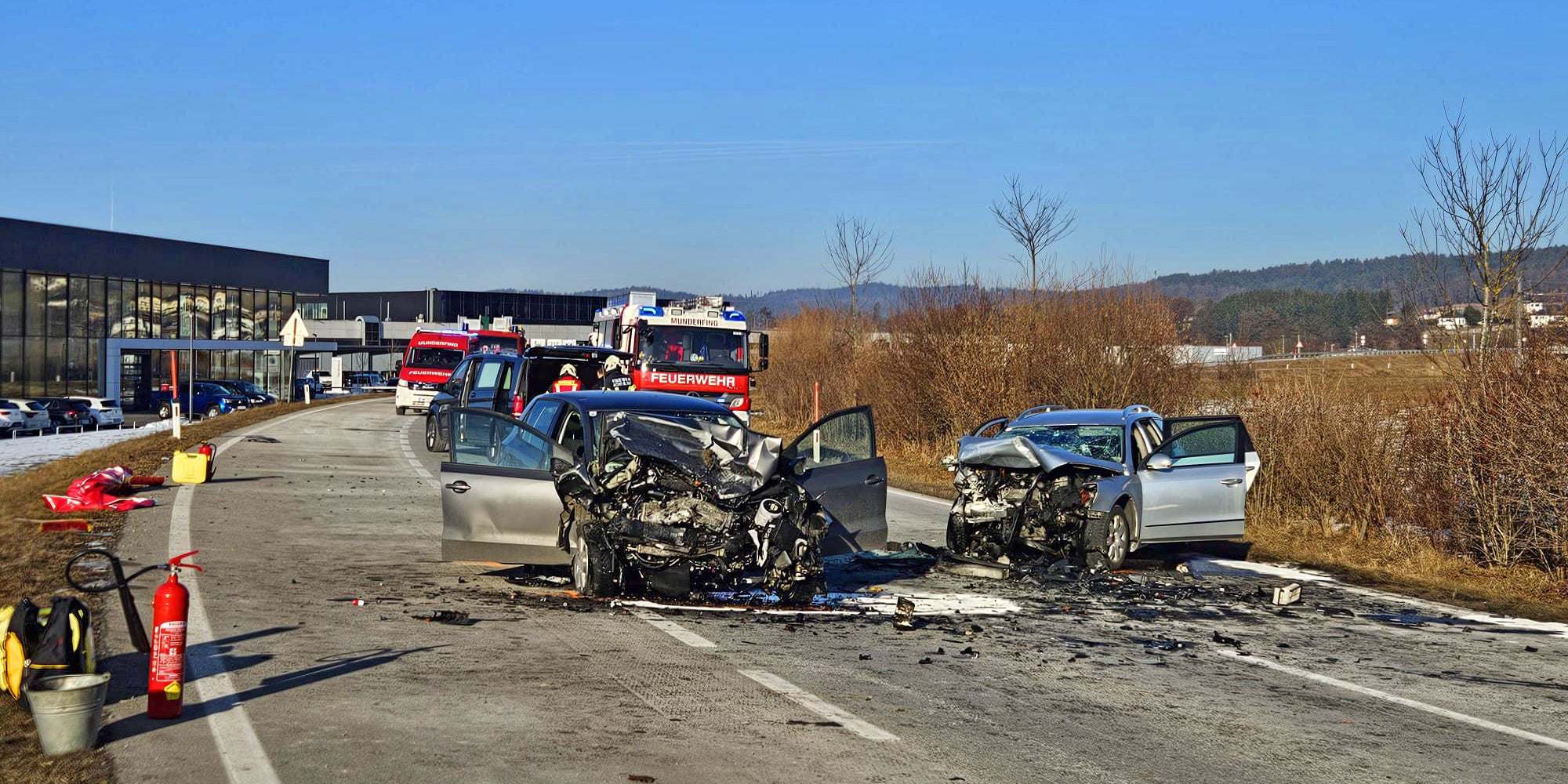 Ein schwerer Unfall auf der B147 bei Munderfing kostete am Dienstag zwei Menschen das Leben. Beide Autos krachten frontal ineinander und wurden stark beschädigt.