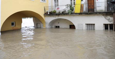 mussten gesperrt werden. Viele Häuser waren nur noch mit Booten erreichbar.