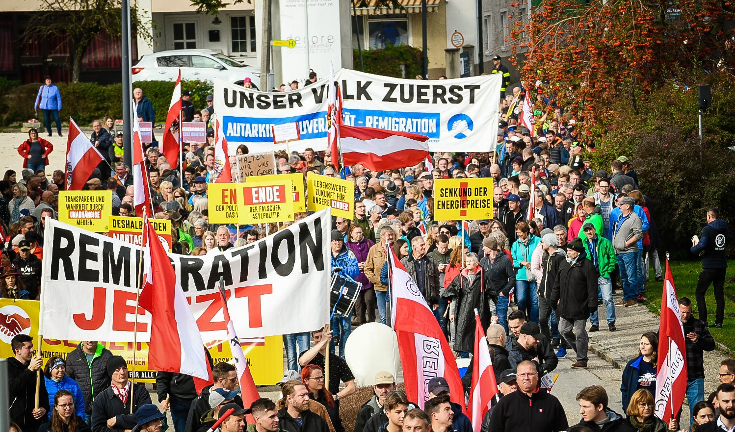 Aufgerufen zum Aktionstag hatten Bürgermeister Ferdinand Aigner (ÖVP) und alle Gemeinderatsfraktionen. Begonnen hat dieser um 10.30 Uhr mit einer "Bürgerinformation" vor dem Gemeindeamt. Hier sprach von jeder Gemeinderatspartei - ÖVP, Grüne, FPÖ und SPÖ - jeweils ein Vertreter. In der Menge befanden sich auch zahlreiche Identitäre und andere amtsbekannte Personen der rechten und rechtsextremen Szene Österreichs, darunter Identitären-Chef Martin Sellner. Auf einem der Transparente wurde "Remigration" gefordert, auf einem anderen war "Österreich ist kein Campingplatz für illegale Migranten" zu lesen. Die Polizei, die von einer aufgeheizten Stimmung sprach, war mit einem großen Aufgebot vor Ort und begleitete die Demonstranten.