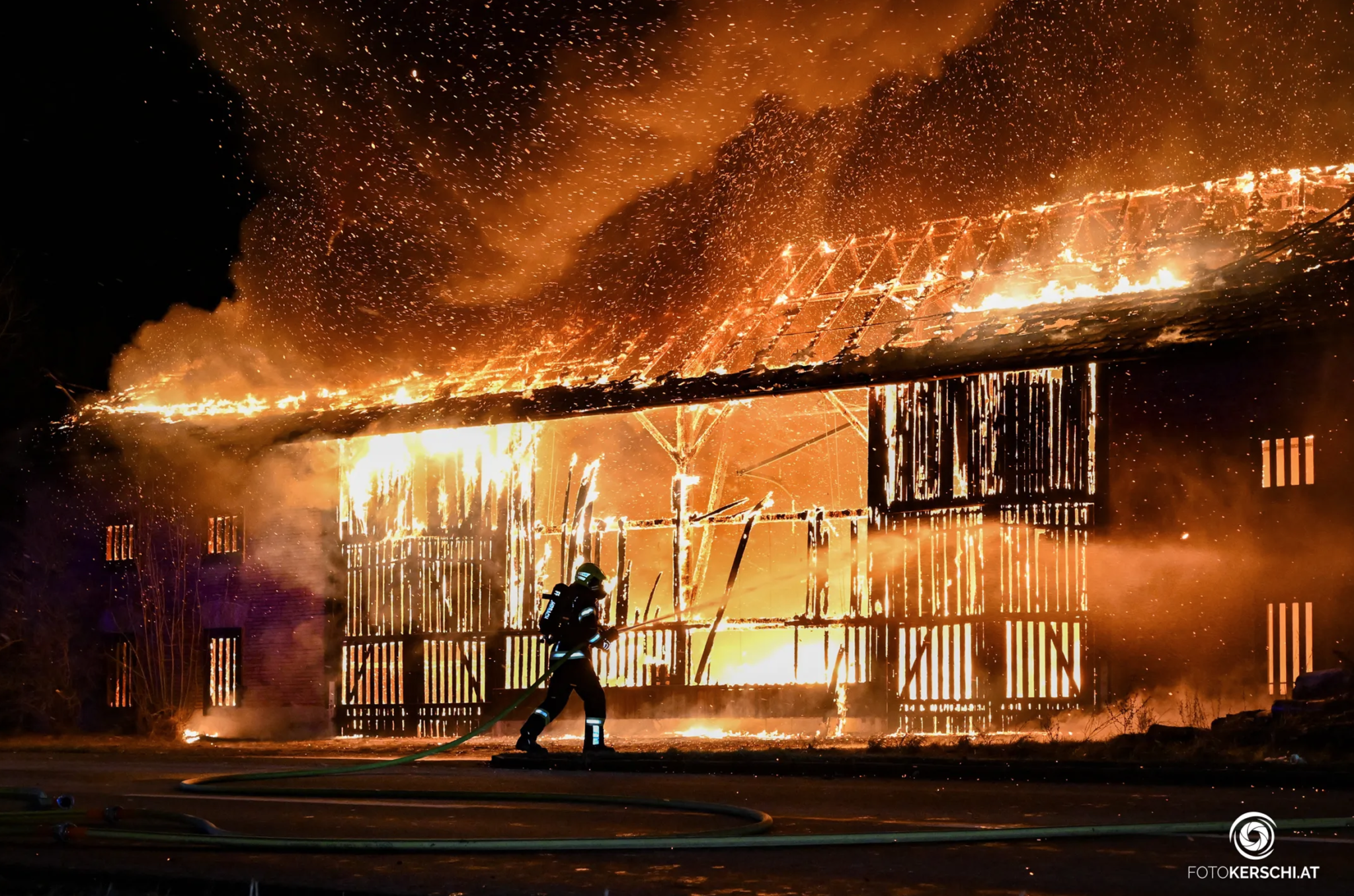 St. Florian. Kurz nach Mitternacht am 1. Jänner haben die Sirenen in Sankt Florian (Bez.Linz-Land) geheult: Die rasche Ausbreitung des Feuers in einem Bauernhaus durch den starken Wind führte dazu, dass mit Alarmstufe zwei gleich elf Feuerwehren ausrückten. Rund sechs Stunden kämpften die Feuerwehrler gegen die Flammen. Um genügend Wasser an die Einsatzstelle zu bringen, musste eine mehrere Kilometer lange Zubringerleitung gelegt werden.