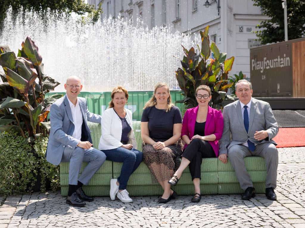Linz. Der Linzer Wasserspielplatz wurde am Mittwoch am Pfarrplatz eröffnet. Bis einschließlich 4. September wird die Attraktion täglich von 10 bis 22 Uhr – sonntags ab 10.30 Uhr – zur erfrischenden und unterhaltsamen Oase für Einheimische und Tourist*innen gleichermaßen. Der Eintritt ist frei, die Play Fountain ist für alle Menschen zugänglich. Das Projekt wird in Zusammenarbeit mit dem Linzer Tourismusverband und der Linz AG realisiert.