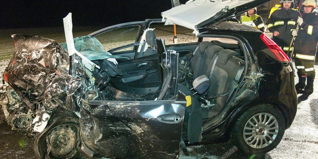 Bei einem Verkehrsunfall in der Nähe von Eferding in Oberösterreich hat es ein Todesopfer und einen Verletzten gegeben. Ein Fiat Punto kam am Dienstagabend auf einer Landstraße im Gemeindegebiet von Prambachkirchen ins Schleudern, prallte auf gegnerischer Fahrbahn in einen Pickup und wurde in eine Hausmauer geschleudert. Der Fahrer des Fiat starb am Unfallort.