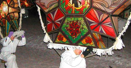 Kappen. Diese bestehen aus einem Gerüst aus Holzstäben, das mit buntem