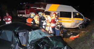 Unterweitersdorf. Dienstagabend, kurz vor 20 Uhr, rasten Rettungsautos, Polizei und zwei Feuerwehren zu der Unfallstelle auf der B310 in Unterweitersdorf (Bezirk Freistadt). Grund: Ein Auto war in der Dunkelheit frontal in einen Rettungswagen gerast. Bilanz: Beide Lenker wurden schwer verletzt, ebenso die 79-jährige Patientin im Fonds des Krankenwagens. Zwei mitfahrende Sanitäter (20 und 32 Jahre alt) erlitten leichtere Blessuren.
