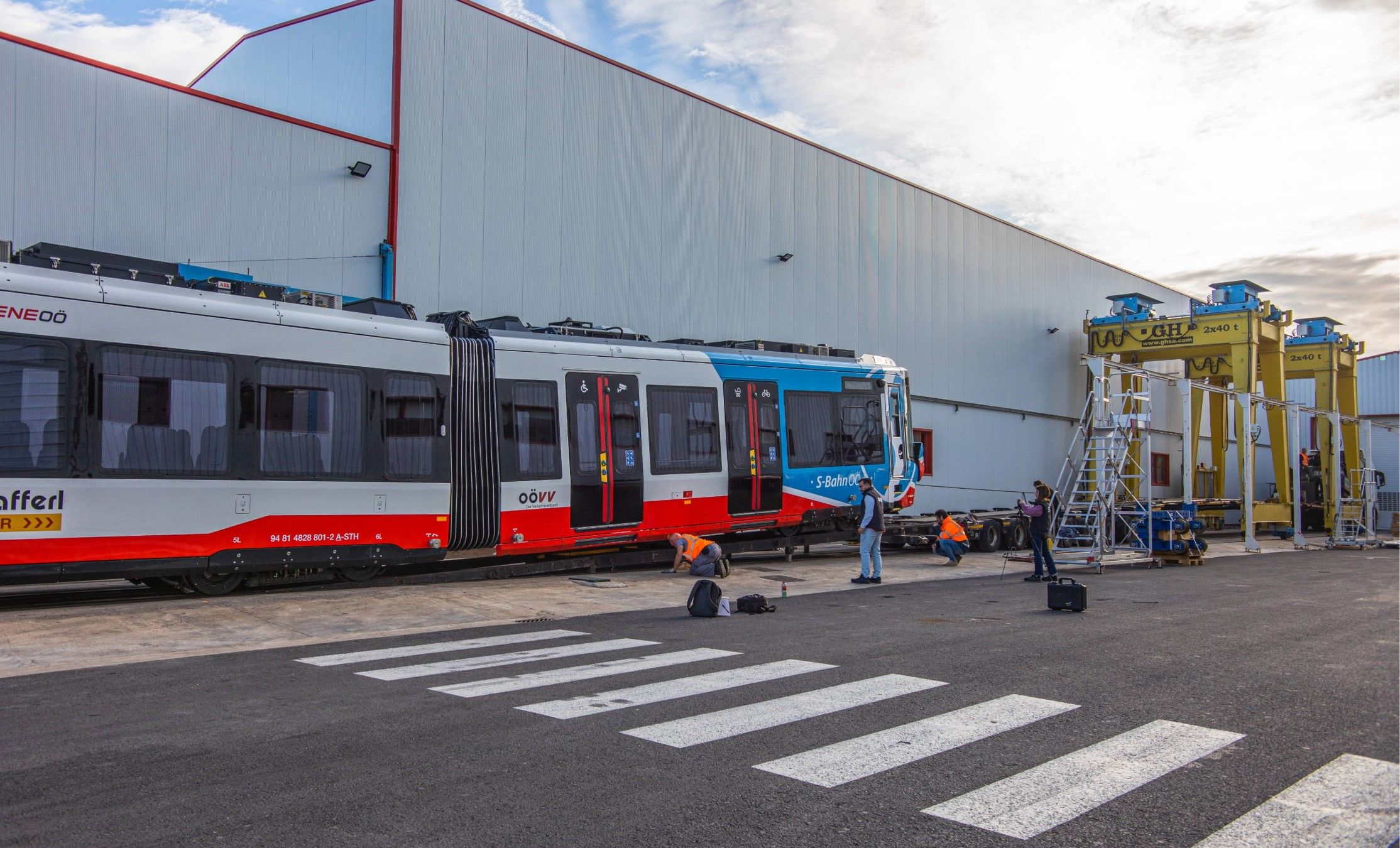 OÖ. Das erste TramTrain-Fahrzeug für die Regional-Stadtbahn befindet sich auf dem Weg nach Eferding in die Bahnwerkstätte von Stern & Hafferl Verkehr. Im Rahmen