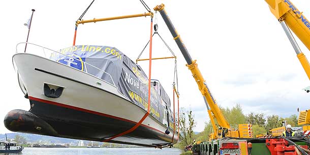 50 Schilder abmontiert. Durch Linz ging es in der Nacht auf Mittwoch. Dort mussten einige Straßen komplett gesperrt werden. Trotz der späten Stunde verfolgten laut Polizei Tausende Neugierige das Spektakel. Zu einer Verzögerung kam es, weil die Straßenlaternen niedriger hingen als angenommen. „Sie mussten alle 20 Meter angehoben werden“, erzählt Anna Dorn-Fussenegger von der neuen Eigentümer-Familie. Insgesamt wurden 50 Schilder abmontiert.
