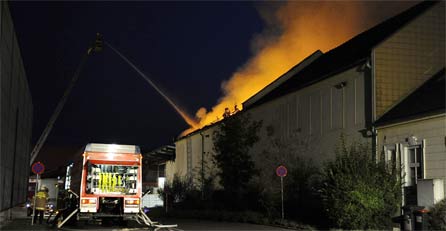 Gegen 18.15 Uhr wurde die Feuerwehr alarmiert. Bei ihrem Eintreffen stand die Firmenhalle bereits in Vollbrand, Teile des Daches stürzten ein. Ein Übergreifen der Flammen auf ein Öllager und andere Gebäudeteile konnte verhindert werden. Gegen 20.00 Uhr hatte die Feuerwehr den Brand unter Kontrolle.
