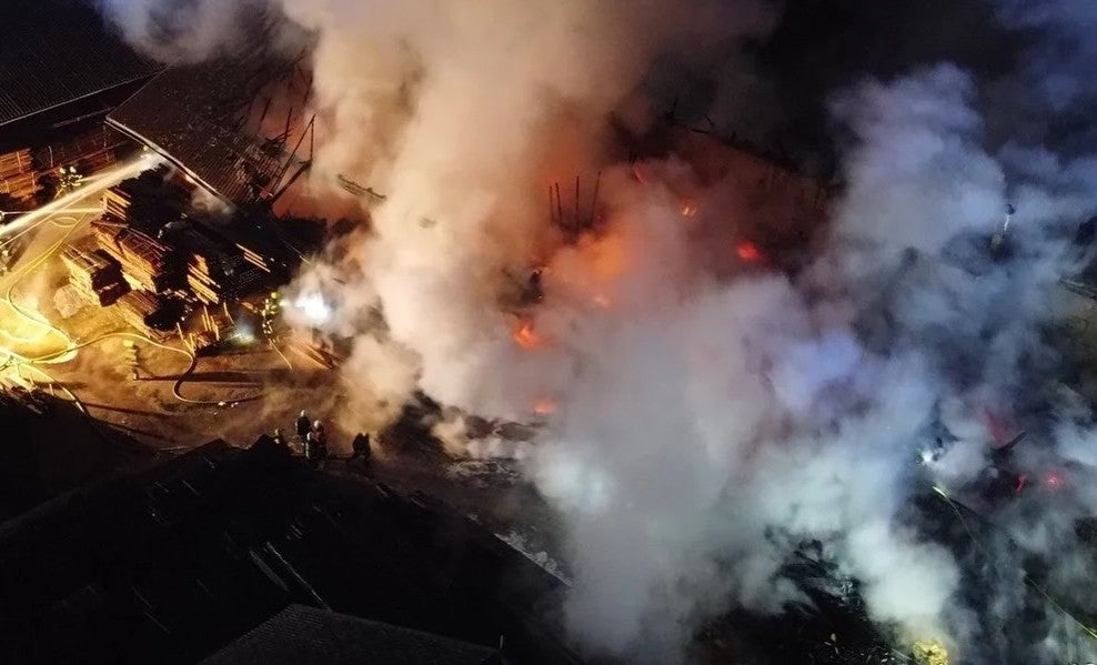 Ein Nachbar hatte das Feuer entdeckt. Die Flammen waren kilometerweit zu sehen. In der Halle lagerten große Mengen Holz, die für eine enorme Brandlast sorgten und das Feuer rasch anfachten. Die Firma verkauft Altholz und historische Baustoffe.