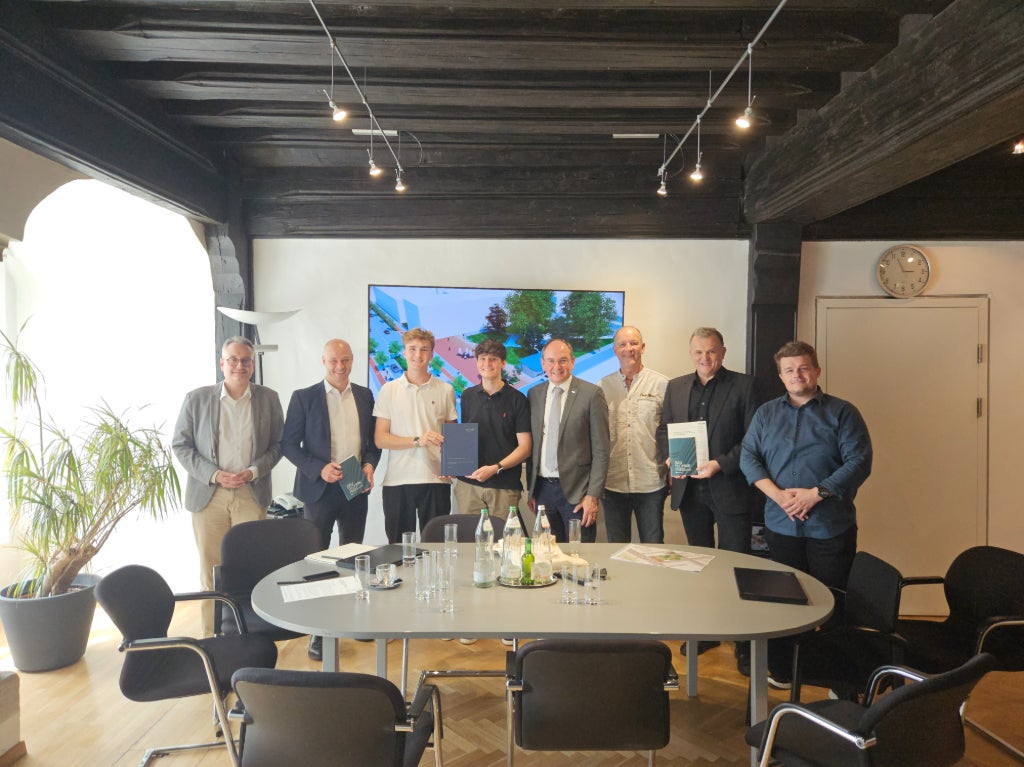 Zwei Schüler der HTL1 Bau und Design Linz präsentierten der Stadt Linz ein Diplomarbeitsprojekt zur Umgestaltung des Lonstorferplatzes im Franckviertel – ein gelungener Auftakt für künftige Kooperationen.