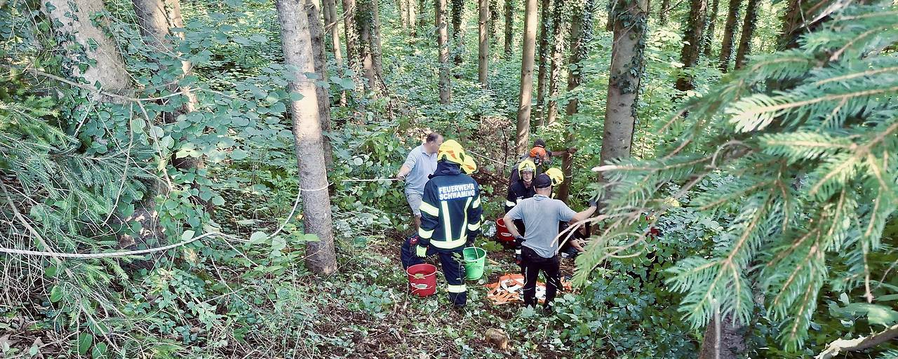 Die Bergung des 12-jährigen Tieres gestaltete sich schwierig. Die Feuerwehren mussten Bäume umschneiden, um das Tier zu erreichen.