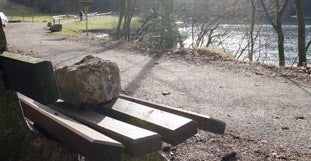 Gruppe auf eine Bank zwischen einer Felswand und dem Ufer, um die letzten