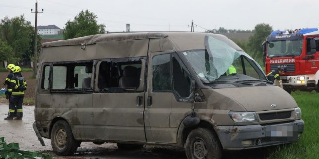 Oberösterreich. Am Samstagabend ereignete sich an einer Kreuzung in der Ortschaft Herrnholz, im Gemeindegebiet von Scharten (Bezirk Eferding), ein tödlicher Verkehrsunfall. Aus bisher noch unbekannten Gründen kam es zu einer Kollision zwischen einem PKW und einem vollbesetzten Kleinbus. Der Kleinbus, in dem sich Erntehelfer befanden, kippte durch den Crash um.