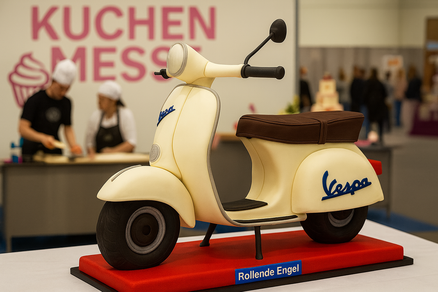 Wels. Der Verein Rollende Engel sorgt bei der Kuchenmesse in Wels von 14. bis 16. November 2025 für ein außergewöhnliches Highlight: Gemeinsam mit Konditormeister Mario Kinberger und Natalie Gojer von der Kuchenwelt wird eine originalgetreue Vespa im Maßstab 1:1 aus Torten gebacken.