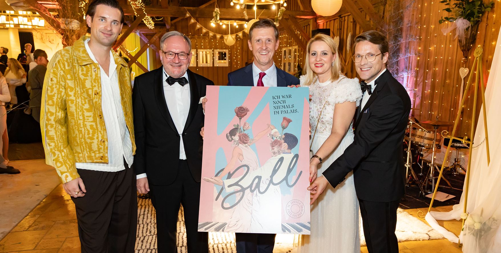 KV-Ballkomitee-Vorsitzende Elke Riemenschneider, KV-Präsident Andreas Zwettler und KV-Geschäftsführer Rafael Hintersteiner verwandelten den Stadlerhof Wilhering gemeinsam mit Hausherrin Margit Stadler-Schauer in ein „Ehrenwertes Haus”, das die Magie des KV-Balls 2026 bereits jetzt spürbar machte. „Ich war noch niemals im Palais“ hieß es dann bei der großen Mottoverkündung inklusive