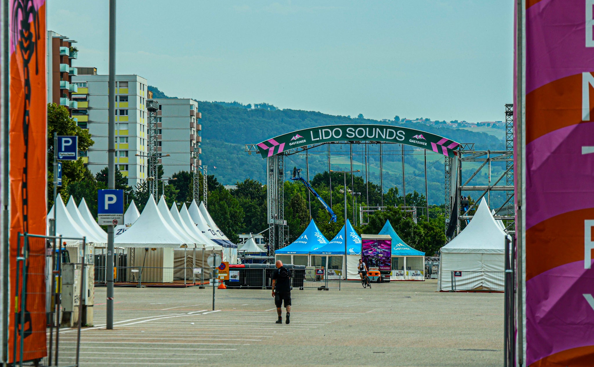 Die Vorbereitungen für das Lido Sounds laufen auf Hochtouren: Die beeindruckende Mainstage steht bereits, weitere Bühnen, Gastro- und Aufenthaltsbereiche folgen in den nächsten Tagen. Ab Freitag verwandelt sich das Donauufer für drei Tage in einen pulsierenden Treffpunkt für Musikliebhaber. Auf dem Programm stehen unter anderem Annenmaykanereit, Justice, Raf Camora, Beatsteaks und viele mehr.