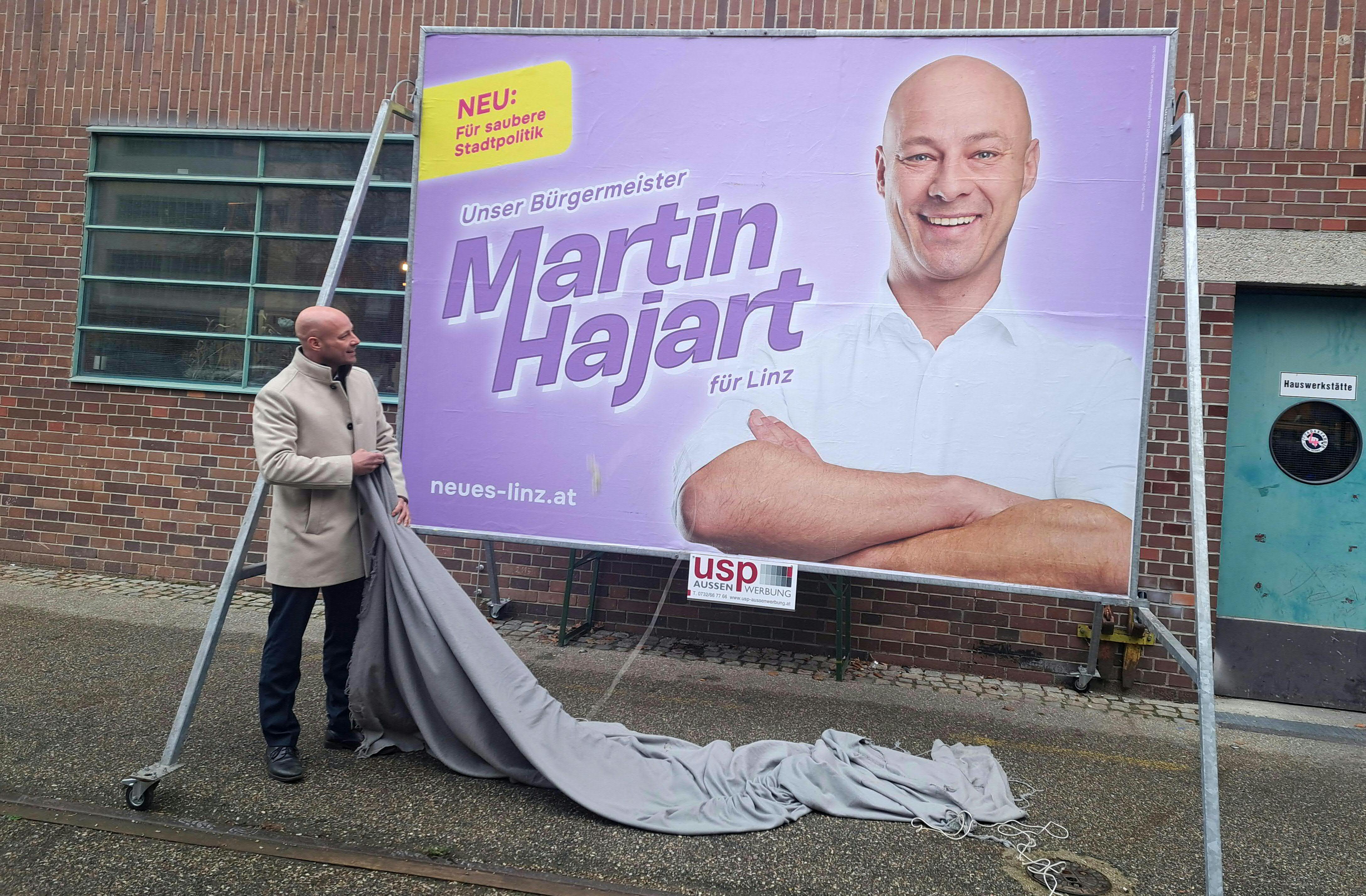 Linz. Der ÖVP-Kandidat für die Linzer Bürgermeisterwahl am 12. Jänner, Martin Hajart, will aufräumen. Der derzeitige Verkehrsreferent hat am Freitag seine erste Plakatwelle präsentiert. Die Assoziation mit einer Waschmittelwerbung ist naheliegend. Im strahlend weißen Hemd tritt er "Für eine saubere Stadtpolitik" ein, in einer Pressekonferenz am Freitag warb er für seinen "Putzplan für Linz".