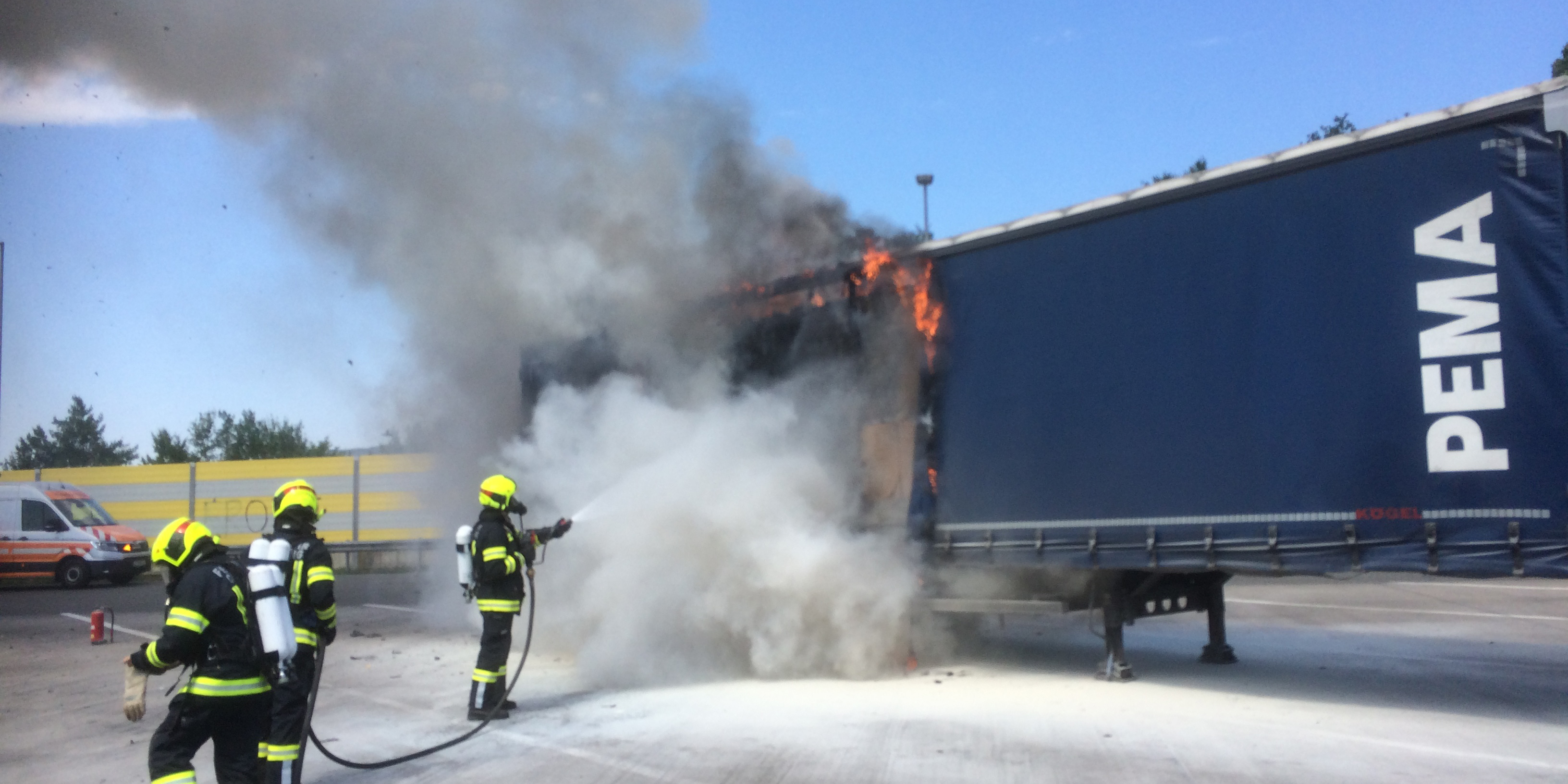 Oberwang. Ein brennender Lkw auf dem Parkplatz Strass auf der Westautobahn (A1) in Oberösterreich hat Freitagmittag für eine Schrecksekunde bei den Einsatzkräften gesorgt. Bei der Durchsicht der Papiere kam heraus, dass der Lkw Munitionskisten geladen hatte. Gemeinsam mit der Polizei habe man dann aber bei einer Stichprobe festgestellt, dass diese leer waren, schilderte Einsatzleiter Robert Grabner von der Feuerwehr Oberwang.