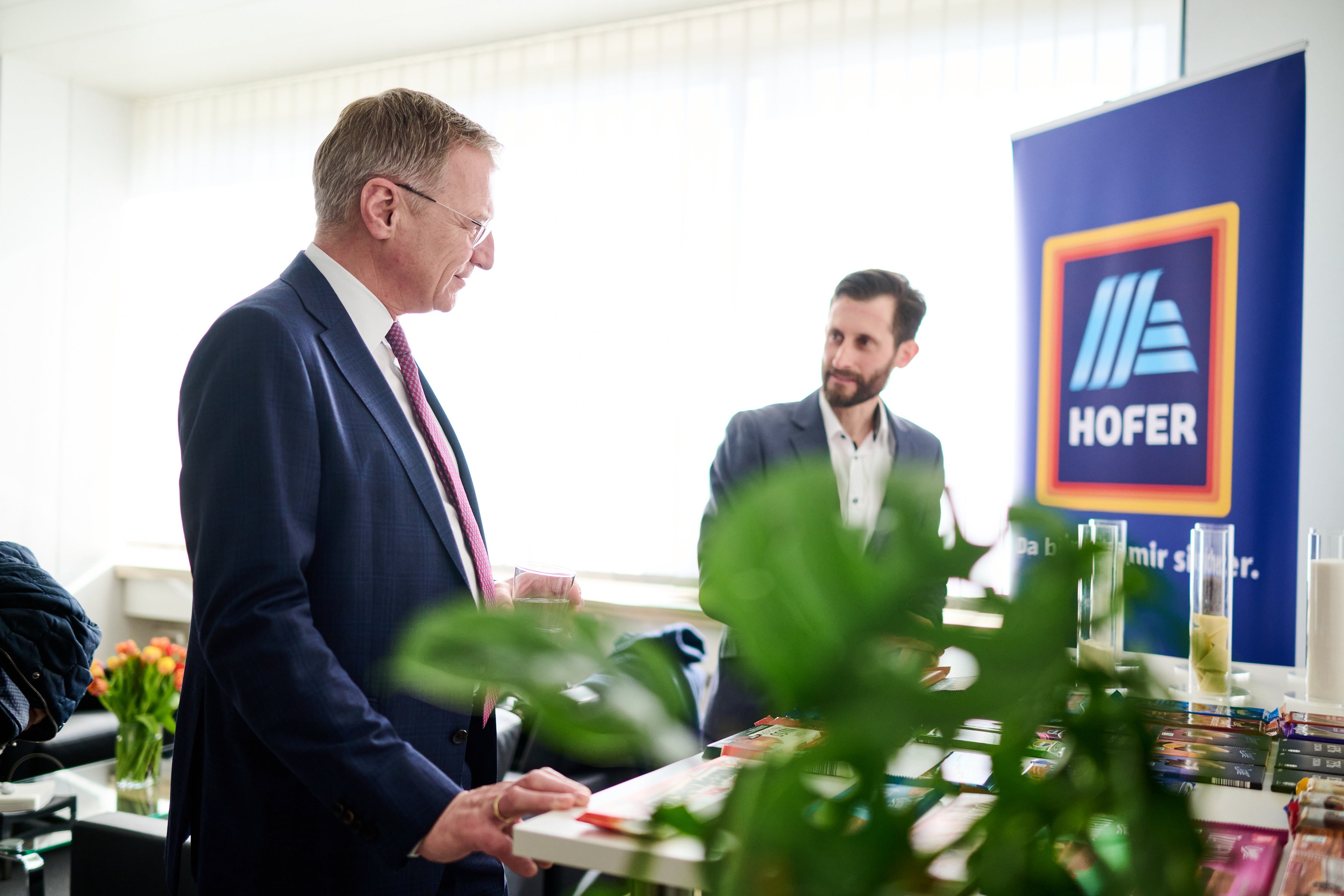 Landeshauptmann Thomas Stelzer besuchte die HOFER Schokoladefabrik in Sattledt und überzeugte sich von der Produktion der beliebten Schokoladenmarken.