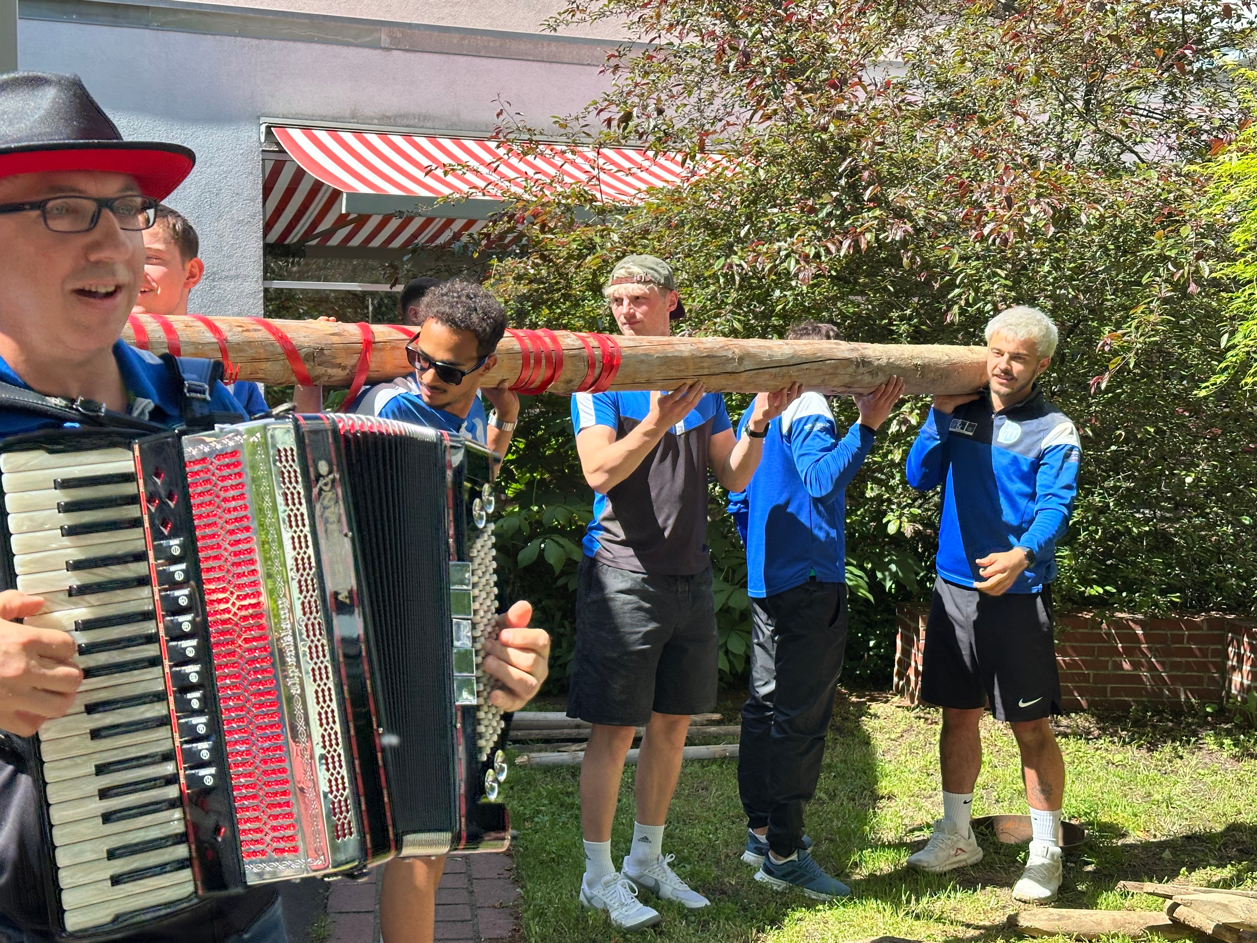 Bei strahlendem Wetter feierten Bewohner, Pflegekräfte, Freiwillige, Angehörige und die „Blauen 11“ ein fröhliches Fest mit Jause, Musik und guter Stimmung. Die Rückgabe erfolgte – wie versprochen – gegen zwei Kisten Bier. Als Dank lud die Mannschaft alle Bewohner und Mitarbeitenden zu einem ihrer Heimspiele ein.