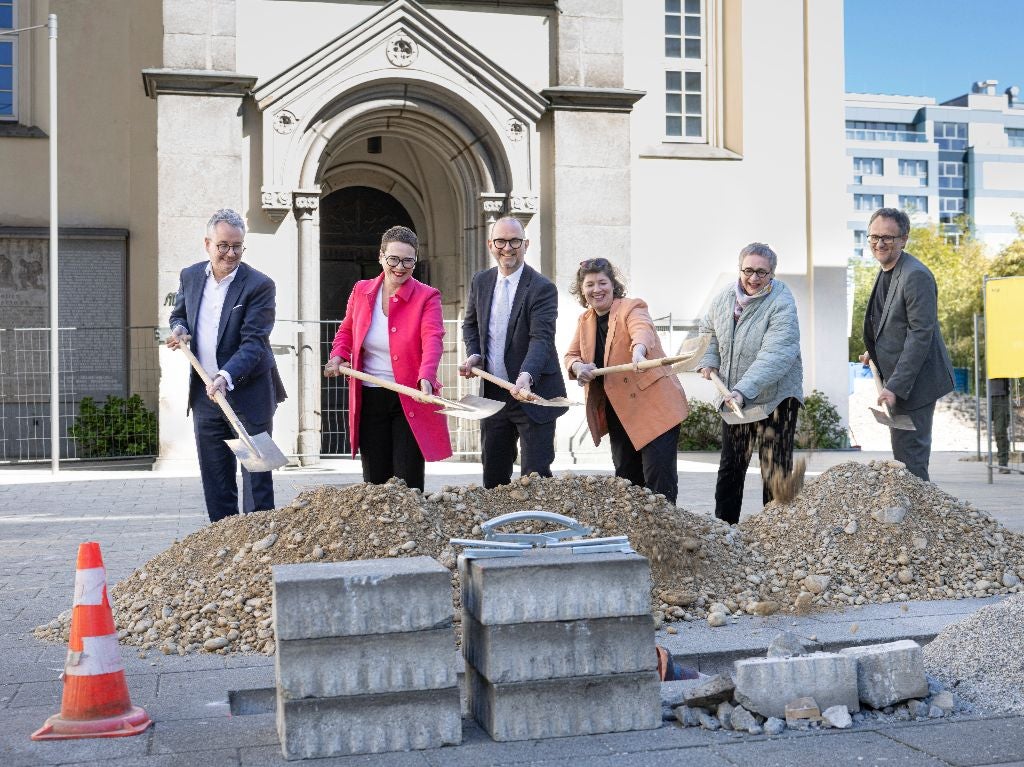 Mit dem Spatenstich beginnt die Neugestaltung des Martin-Luther-Platzes. Mehr Grün und Aufenthaltsqualität stehen im Fokus.