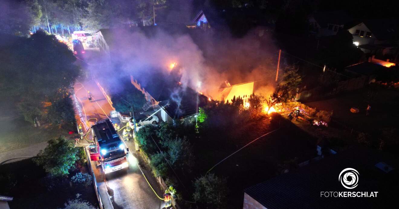 Bei einer Tiefenbohrung für eine Wärmepumpe für ein Wohnhaus war es Dienstagabend in rund 90 Metern Tiefe zu einem Wasseraustritt gekommen. 1.000 Liter Wasser pro Minute schossen an die Oberfläche. Die Feuerwehr pumpte das Wasser ab und die Lage galt als stabil. Plötzlich gegen 21.00 Uhr kam es in einem Haus rund 100 Meter von der Tiefenbohrung entfernt zur Explosion und es begann zu brennen. Der Bewohner wurde von der Feuerwehr aus dem brennenden Gebäude gerettet und mit Verdacht auf eine Rauchgasvergiftung ins Spital gebracht, seine Lebensgefährtin blieb unverletzt. Ursache für die Explosion war Gas, das ebenfalls aus dem Bohrloch gedrungen war und sich seinen Weg an die Oberfläche gesucht hatte. In der Nacht trat immer wieder Gas aus und begann zu brennen. 130 Kräfte von 13 Wehren standen im Großeinsatz.