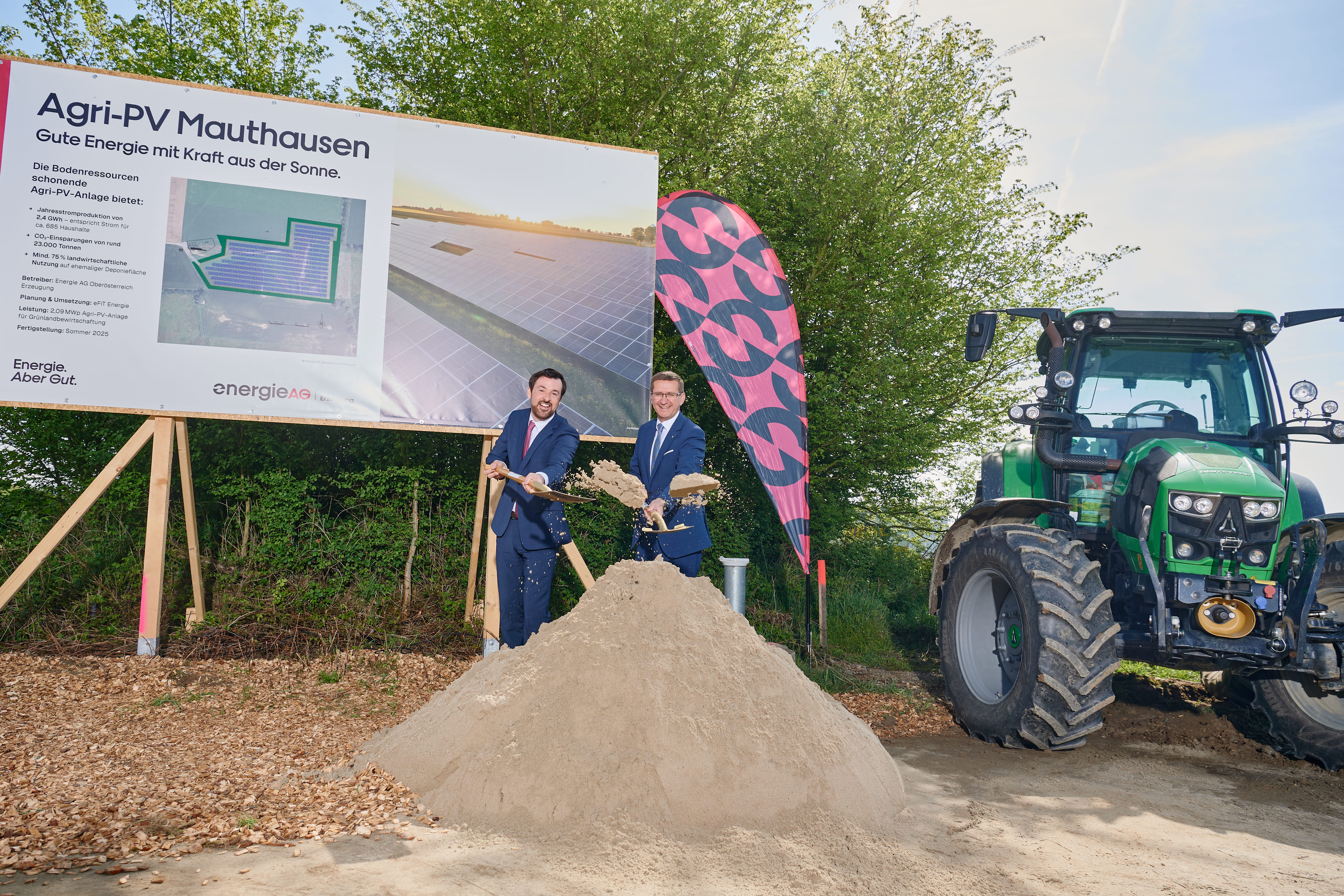 Mauthausen. Die Energie AG setzt ihren Kurs in Richtung nachhaltige Energiezukunft weiter konsequent fort: Mittwochvormittag fiel gemeinsam mit Energie AG-Aufsichtsratsvorsitzendem Markus Achleitner, CTO Alexander Kirchner und dem Mauthausener Bürgermeister Thomas Punkenhofer der offizielle Startschuss für eine Agri-PV-Anlage in Mauthausen.