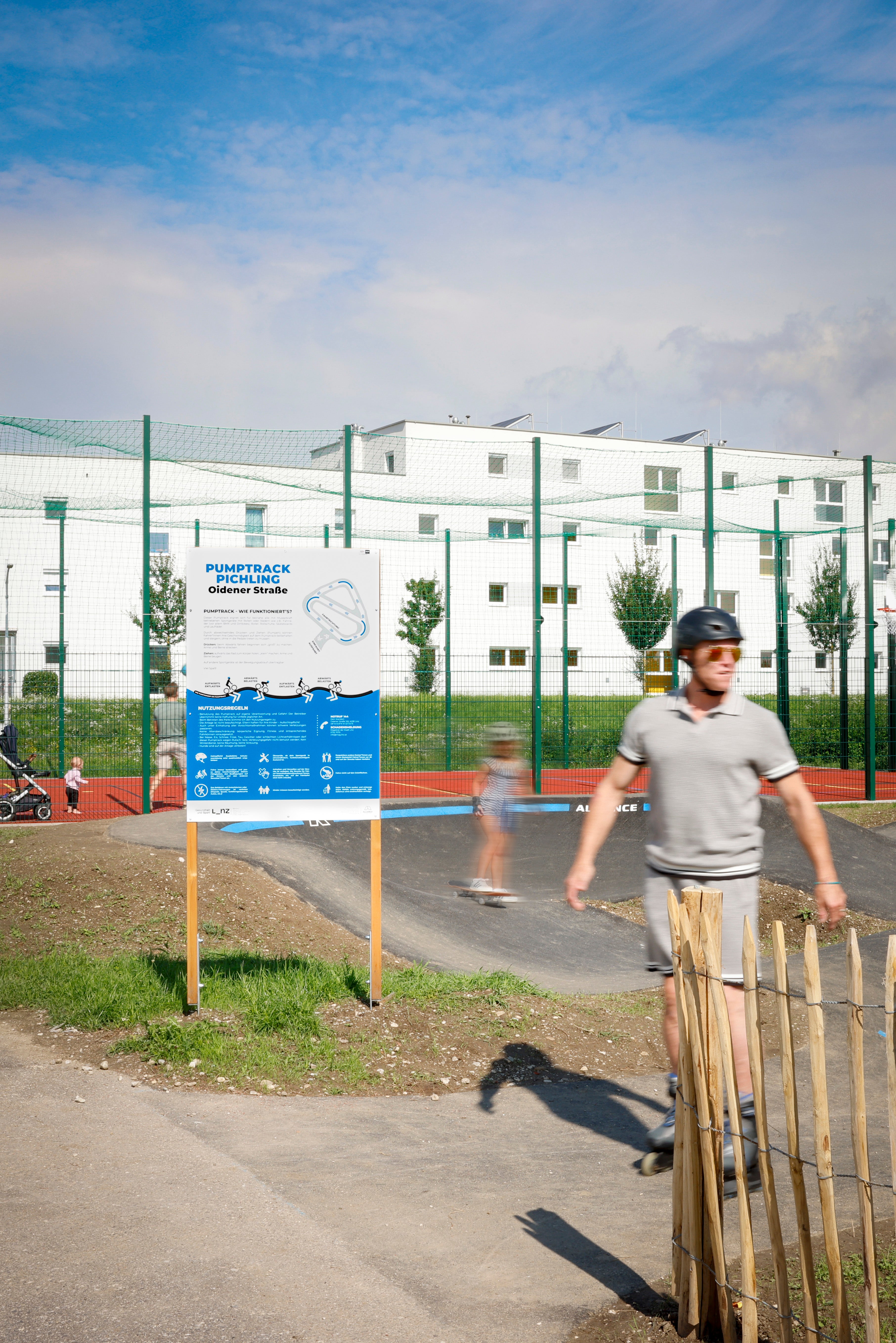 Linz. Seit 30. Juli stehen die neuen Sportanlagen in der Oidener Straße 100 in Pichling – ein Pumptrack und eine Ballsportanlage – für die Öffentlichkeit zur Verfügung. Beide Anlagen wurden im Rahmen der Sport- und Bewegungsstrategie umgesetzt und fördern niederschwellige und kostenlose Bewegungsangebote im Linzer Süden. Besonders berücksichtigt wurden dabei die Bedürfnisse von Kindern und Jugendlichen sowie die nahegelegenen Bildungseinrichtungen. Im Herbst folgt noch die Bepflanzung mit Bäumen und Hecken. Die offizielle Eröffnung wird im September mit einem bunten Fest erfolgen.