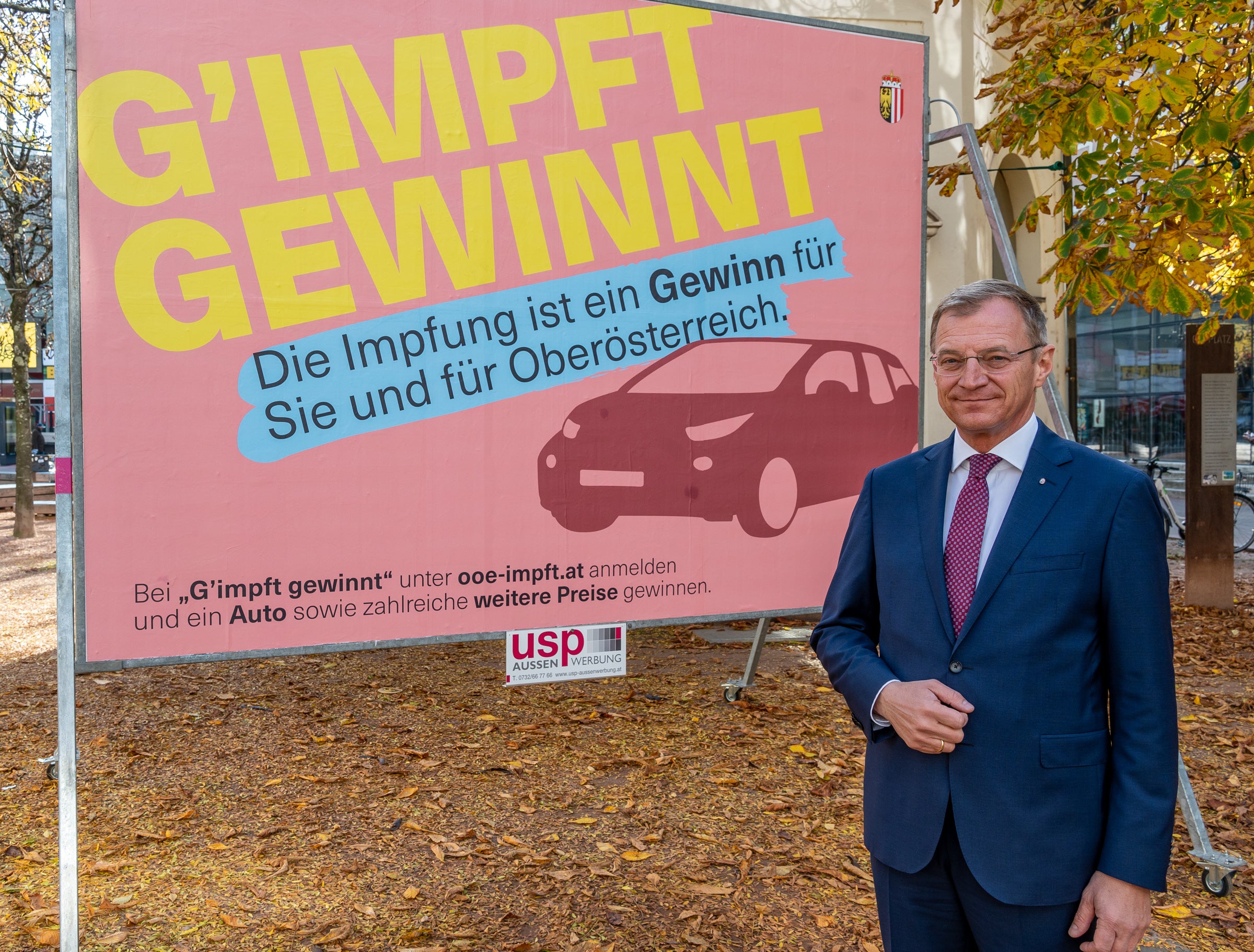 "G’impft gewinnt" – Oberösterreich startet Impflotterie" in Linz.