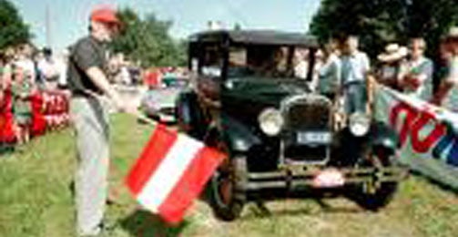 Rund 200 der Oldtimer auf zwei und vier Rädern gehen dann ins " Rennen". Nach dem Startprozedere von "Maserati-Pfarrer" Manfred Brandl werden die Teilnehmer auf die Reise nach Pasching bei Linz geschickt.