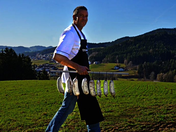 Es können u.a. Apfelwein und Wüdian-Speck aus OÖ verkostet werden