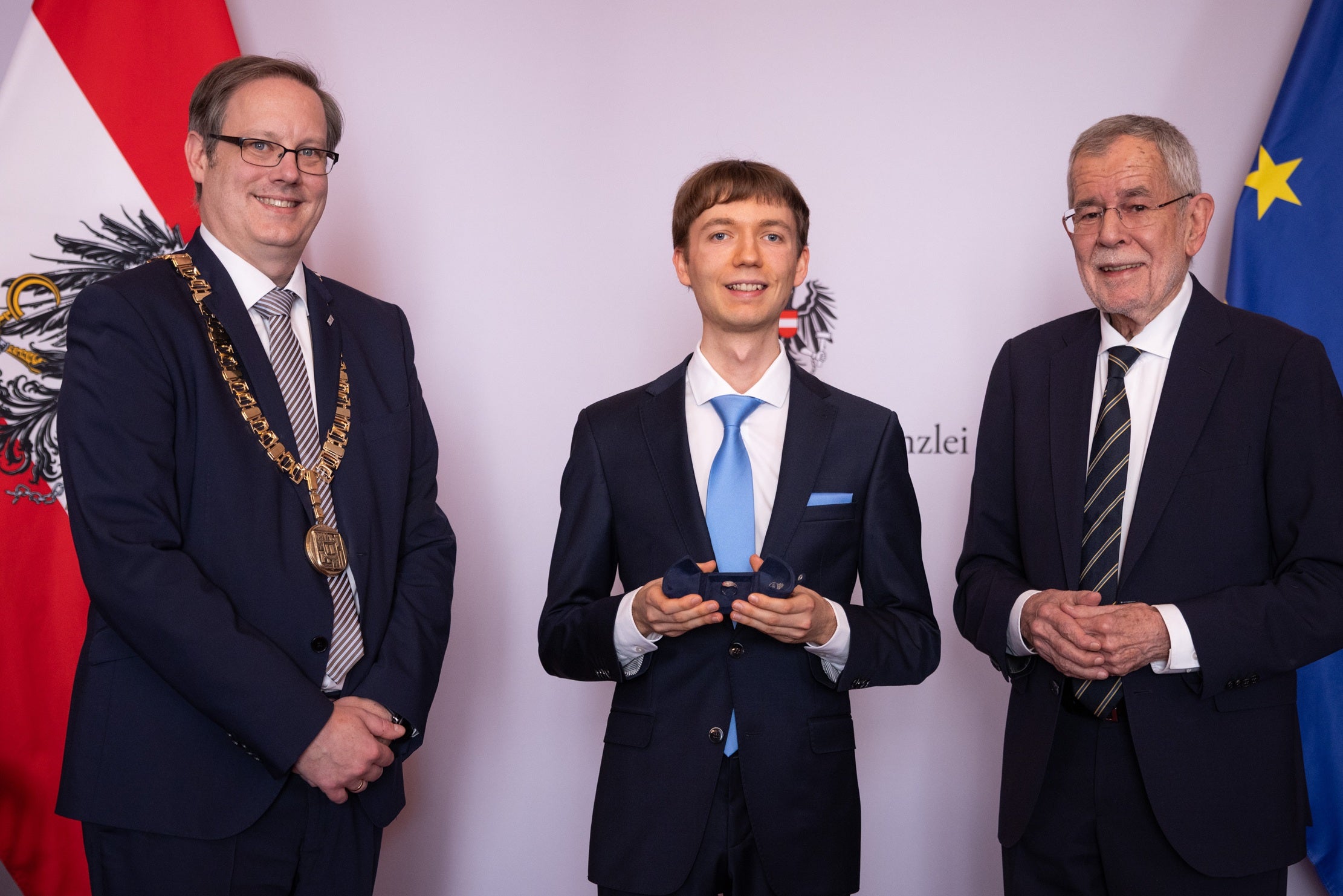 Linz. Nur rund 20 Absolventen erhalten im Durchschnitt jedes Jahr die höchste Auszeichnung für einen besonderen Studienerfolg: die Promotio sub auspiciis. Nun durften sich gleich drei Absolventen der Johannes Kepler Universität Linz über diese Ehrung durch Bundespräsident Alexander Van der Bellen freuen: das Staatsoberhaupt überreichte die Ehrenringe. Eine Sub-auspiciis-Promotion ist die höchste Auszeichnung einer Studienleistung in Österreich. Die Voraussetzung: Von der Oberstufe bis zum Ende des Studiums dürfen nur „Sehr gut“-Bewertungen vorliegen. Mit dem Elektroniker und Informationstechniker Stefan Baumgartner aus Kirchschlag, Mathematiker Thomas Franz Speckhofer aus Attnang-Puchheim und Ökonom René Wiesinger haben das drei JKU Studierende – und nunmehrigen Absolventen –geschafft.