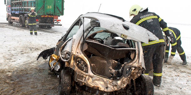 Gegen 6.30 Uhr kam die Frau mit ihrem Wagen ins Schleudern, geriet auf die Gegenfahrbahn und krachte in den Transporter, der Gasflaschen geladen hatte. Sie konnte noch vor Eintreffen der Feuerwehr aus dem Wrack befreit werden und wurde ins AKH Linz eingeliefert. In Marchtrenk (Bezirk Wels-Land) bremste ein 37-jähriger slowakischer Lenker aus vorerst unbekannter Ursache kurz vor 6.00 Uhr seinen Pkw auf der Wiener Straße (B1) ab und geriet ins Schleudern. Das Auto krachte gegen den Wagen einer 31-jährigen Welserin, die verletzt wurde. In Schalchen (Bezirk Braunau) wurde ein 40-jähriger Bayer aus Wittibreut (Landkreis Rottal-Inn) in seinem Pkw eingeklemmt und verletzt, nachdem mehrere Fahrzeuge zusammengekracht waren. Die Braunauer Straße (B147) musste für rund eineinhalb Stunden gesperrt werden.