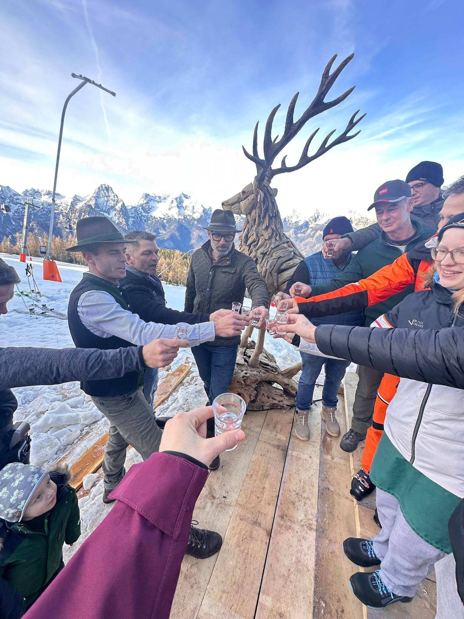 Hinterstoder. Am 12. Dezember wurde die Hirschkogelalm in Hinterstoder (Bez. Kirchdorf) wiedereröffnet. Die Alm liegt direkt an der Piste neben der Bergstation der Hirschkogelbahn (10er Gondel). Gemeinsam mit Freunden und Partnern wurde der imposante Hüttenhirsch aus Holz auf den Namen Konrad getauft.