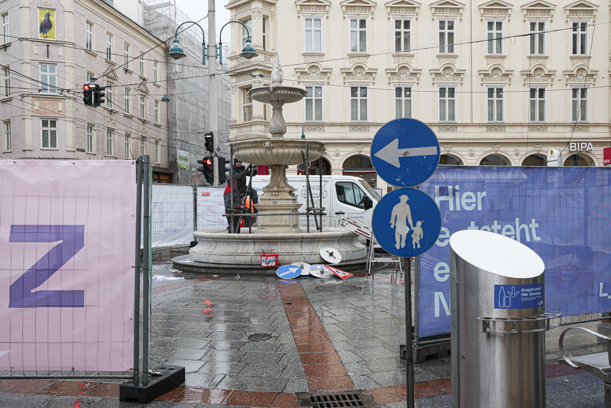 Nach Jahrzehnten am Linzer Taubenmarkt kehrt der Sparkassenbrunnen an seinen ursprünglichen Platz zurück