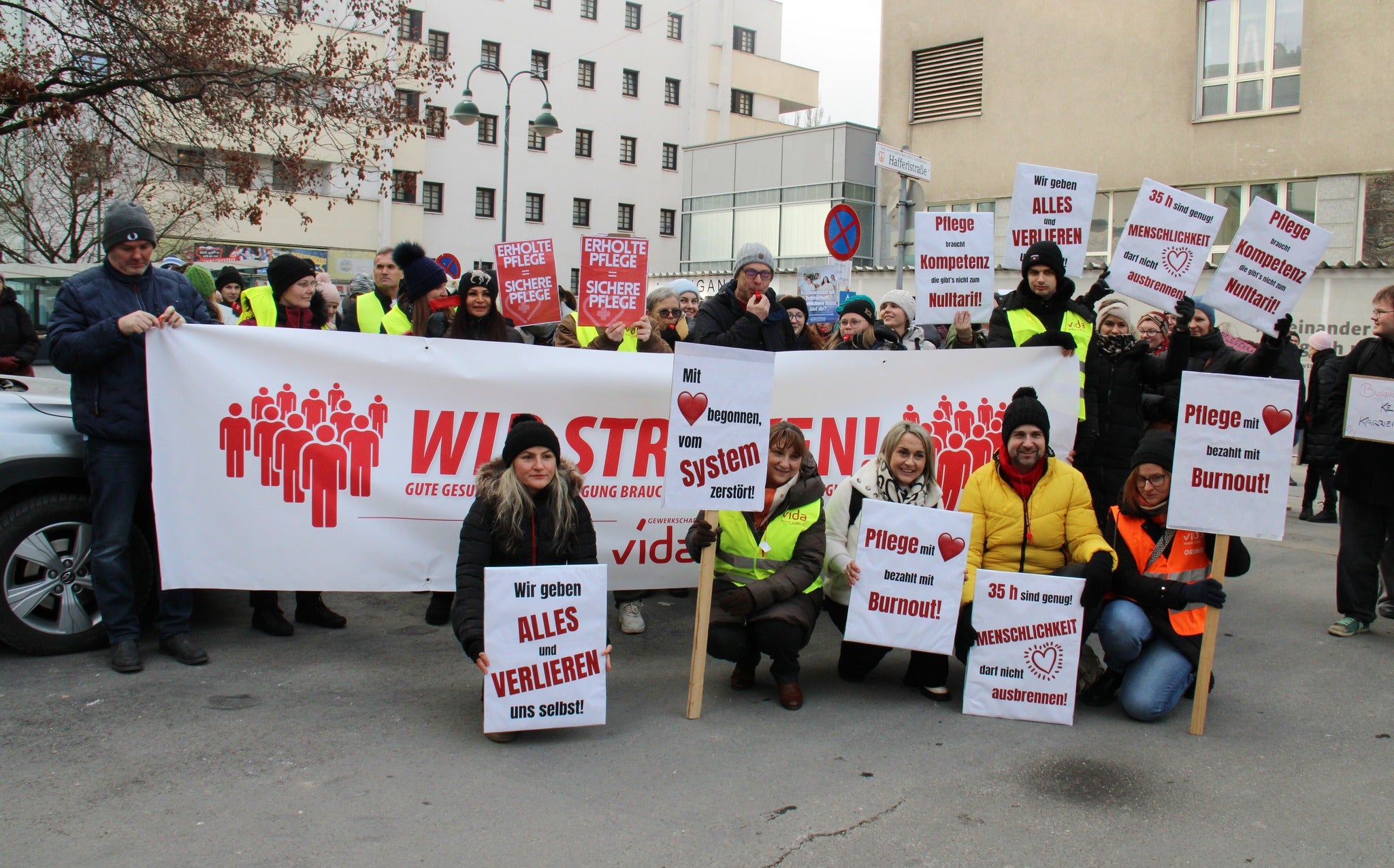 In einer Abstimmung der Gewerkschaft vida hatten sich 93,3 Prozent für eine Arbeitsniederlegung in allen acht betroffenen Häusern ausgesprochen, woraufhin der ÖGB die Streik-Freigabe erteilte. Die Arbeitgeber bieten bisher aber für die rund 10.000 Beschäftigten nur 3,3 Prozent Plus und halten eine Arbeitszeitverkürzung für unrealistisch.