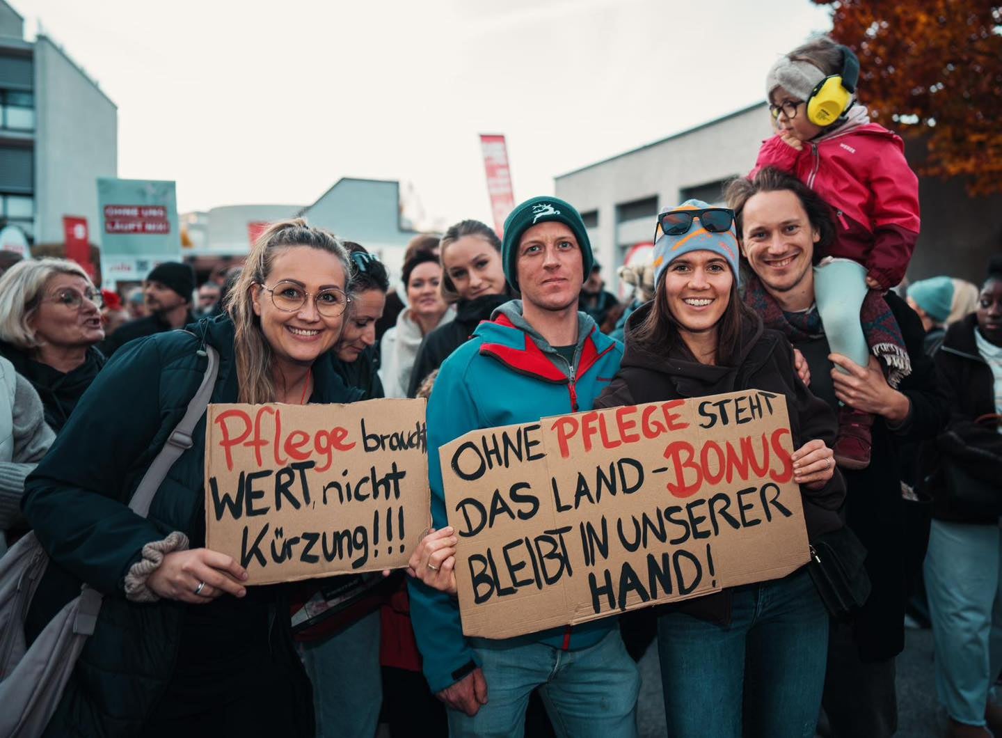 Szbg. Mehrere hundert Pflegekräfte haben am Mittwochnachmittag in Salzburg gegen die Sparpläne der ÖVP-FPÖ-Landesregierung demonstriert. In einer Betriebsrätekonferenz hat man sich zudem auf einen weiteren Protestzug zum Sitz der Landesregierung am 25. November geeinigt - am Tag vor dem Budgetlandtag. Streiks oder Betriebsversammlungen behalte man sich noch vor, hieß es zur APA. Auch die Landtagssitzung am Mittwoch war von Debatten über die geplanten Kürzungen geprägt.