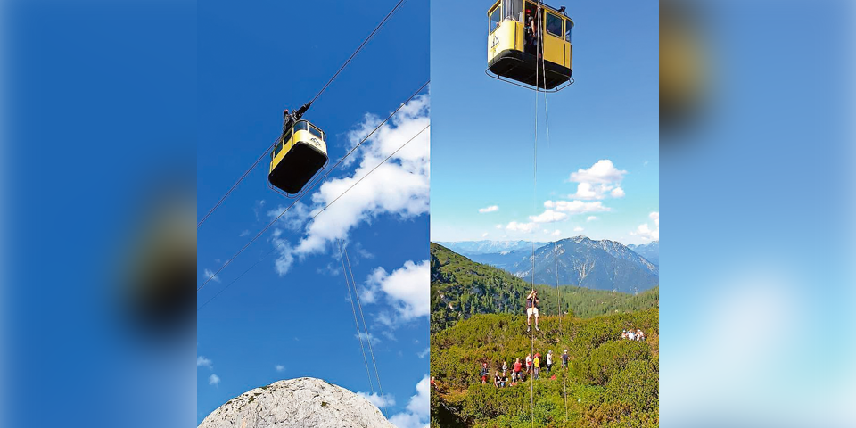 Ein deutscher Fahrgast, der gegen 14 Uhr mit der Dachsteinseilbahn unterwegs war, schwebte nicht nur mit der Gondel über den Wolken, sondern offenbar auch mit seinen Gedanken. Er verwechselte nämlich während der Fahrt die Notbremse mit dem Haltegriff und zog daran. Durch den abrupten Stopp der Bahn kam es zu einem Überwurf des Zugseils. Die Gondelbahn konnte zwischen der Bergstation Krippenstein und der Gjaidalm nicht mehr weiterfahren.