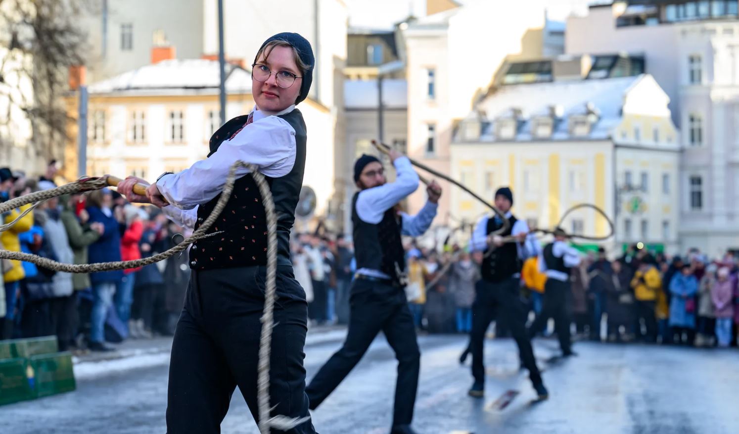 OÖ. Vor dem Linzer Landhaus fand am Neujahrstag das traditionelle Neujahrsschnalzen statt. Dieser Brauch, der heuer bereits zum 101. Mal gepflegt wurde, steht symbolisch für das Vertreiben böser Geister und soll dem neuen Jahr Glück und Segen bringen. Der Brauch wurde von zugewanderten Bauernsöhnen aus dem Mühlviertel nach Linz mitgebracht.