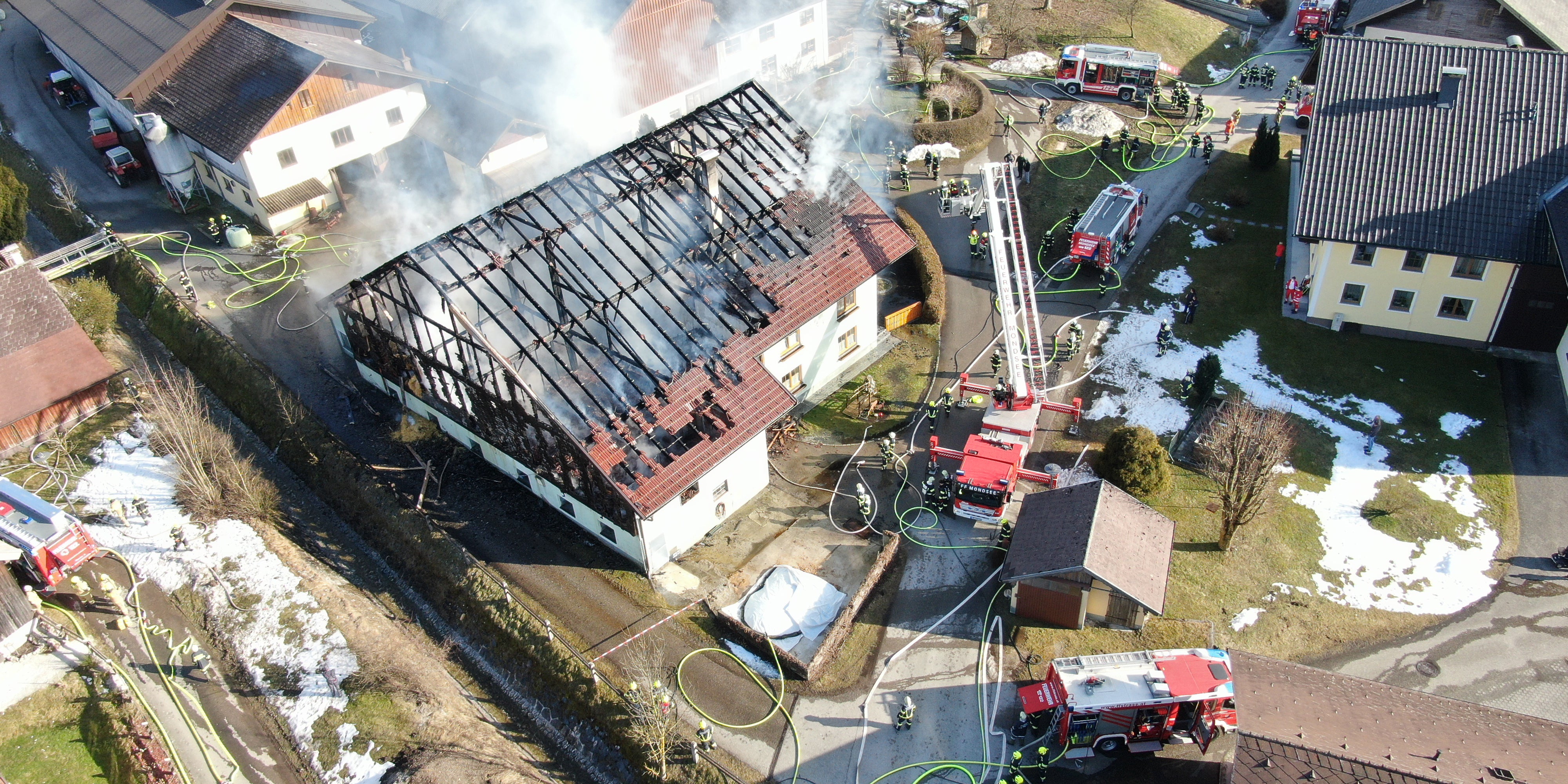 Bauernhaus mitten im Ort Oberwang in Oberösterreich brannte.