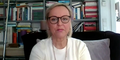 einer hautfarbenen Gesichtsmaske und einer schwarzer Schirmkappe maskiert.