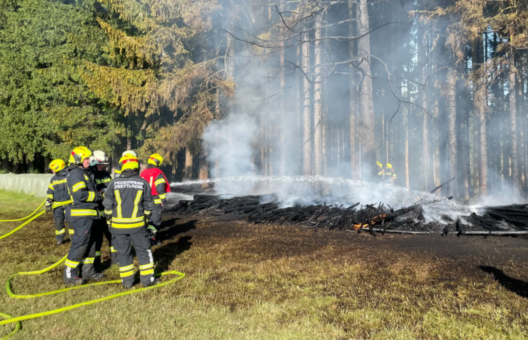 Unterstützt wurden sie dabei auch von mehreren Landwirten, die mit Güllefässern Löschwasser zur Einsatzstelle transportierten. Die Löschwasserversorgung erfolgte zusätzlich über lange Schlauchleitungen vom nahegelegenen Fischteich.