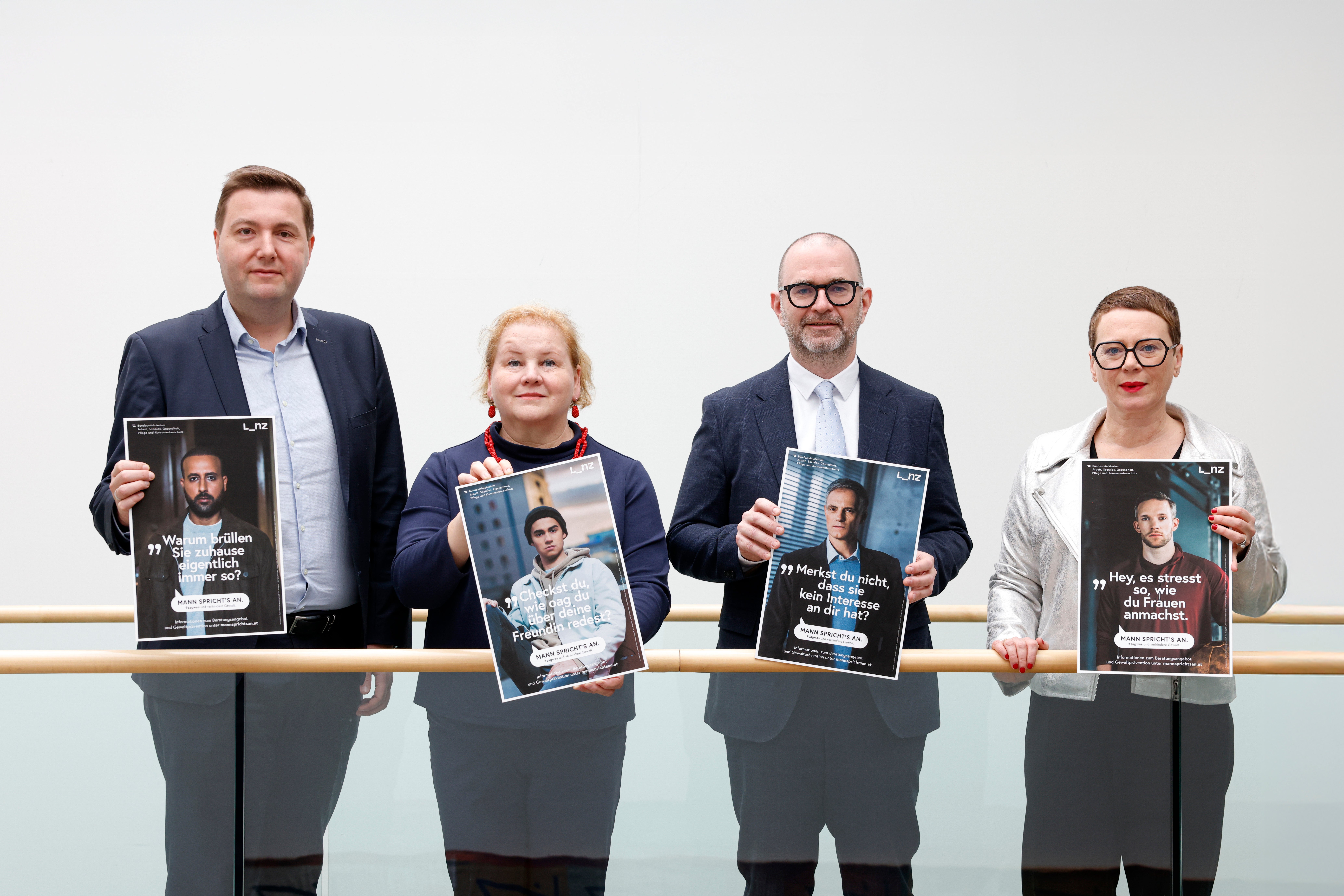 Linz. Jede dritte Frau in Österreich ist im Laufe ihres Lebens von Gewalt betroffen. 90 Prozent der Täter sind Männer. Die Kampagne „#sagwas – Mann spricht's an“ des Sozialministeriums macht bereits seit 2021 auf dieses Thema aufmerksam. Linz will mit der Umsetzung der Kampagne eine Vorreiterrolle unter Österreichs Städten übernehmen, der Beschluss dazu soll im Gemeinderat am 10. Dezember fallen. Die „#sagwas – Mann spricht’s an“-Plakate sollen vor allem Männer ermutigen einzuschreiten, wenn sie Zeugen von Gewalt gegen Frauen werden. Sie adressiert daher direkt die Verantwortung von Männern – und zwar nicht als Täter, sondern als jene, die einschreiten können, wenn sie Übergriffe mitbekommen.