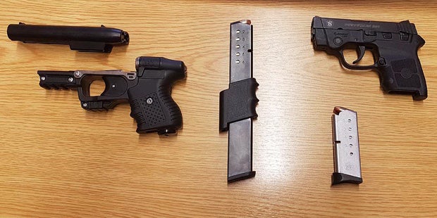 Polizei beschlagnahmte Pistole, 20 Stück Munition und eine Reizstoffpistole.
