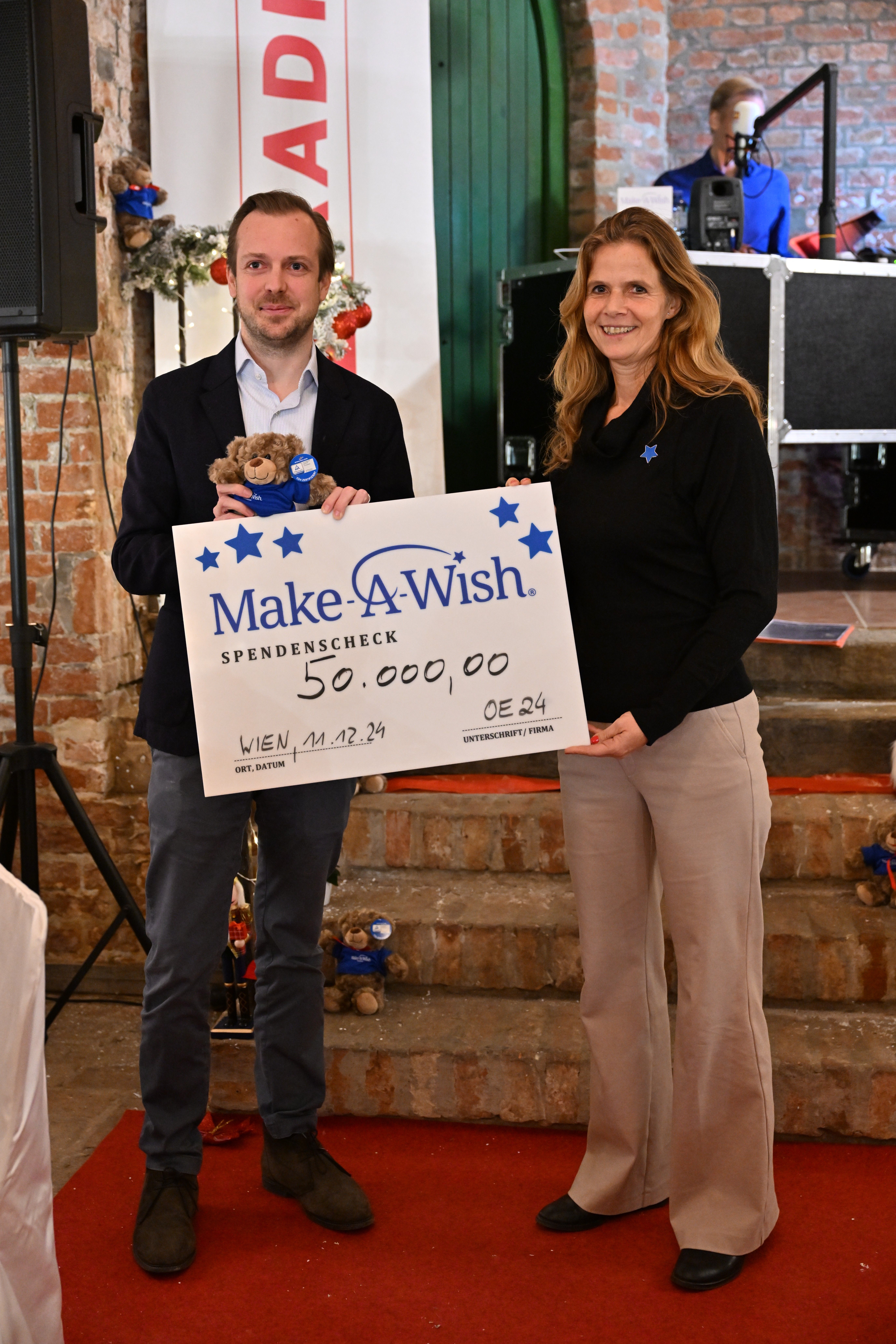 oe24 und Make-A-Wish starteten eine beispiellose Partnerschaft und setzen sich für schwerstkranke Kinder ein, um Herzenswünsche zu erfüllen! Im Rahmen einer Charity-Gala sammelte oe24 50.000 Euro und eine zusätzlich versteigerte Gitarre brachte 3.000 Euro. Insgesamt konnten durch eine Kombination aus Privat- und Firmenspenden beeindruckende 55.000 Euro gesammelt werden.