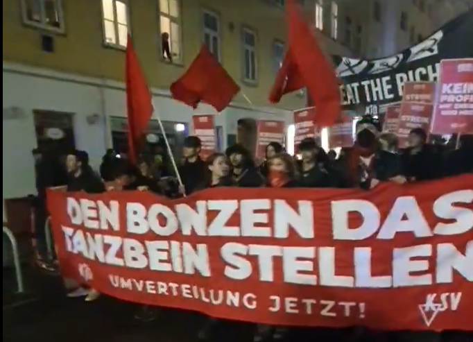 Die Kommunistische Jugend Österreich empört sich über die "Zuschaustellung von Reichtum am Opernball". Dort würden die Reichen und Schönen "ihr von uns erarbeitete Geld verprassen."